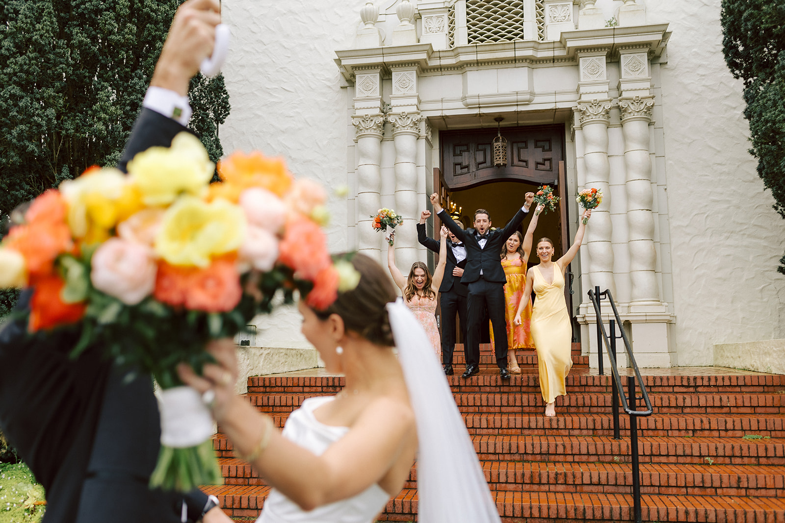 Katie and Chris’s romantic September wedding at Beltane Ranch in Napa Valley featured a stunning pink bow gown, lush red florals, and pure romance.